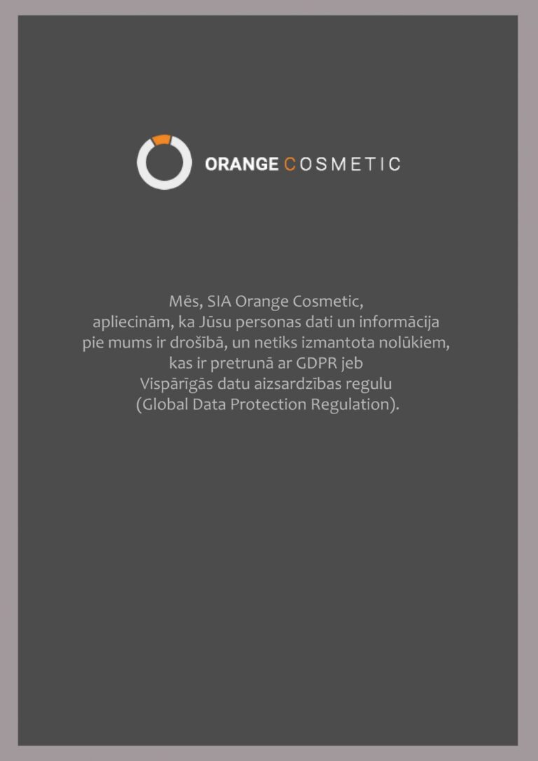 Mēs, SIA Orange Cosmetic, apliecinām, ka Jūsu personas dati un informācija pie mums ir drošībā, un netiks izmantota nolūkiem, kas ir pretrunā ar GDPR jeb Vispārīgās datu aizsardzības regulu. (Global Data Protection…