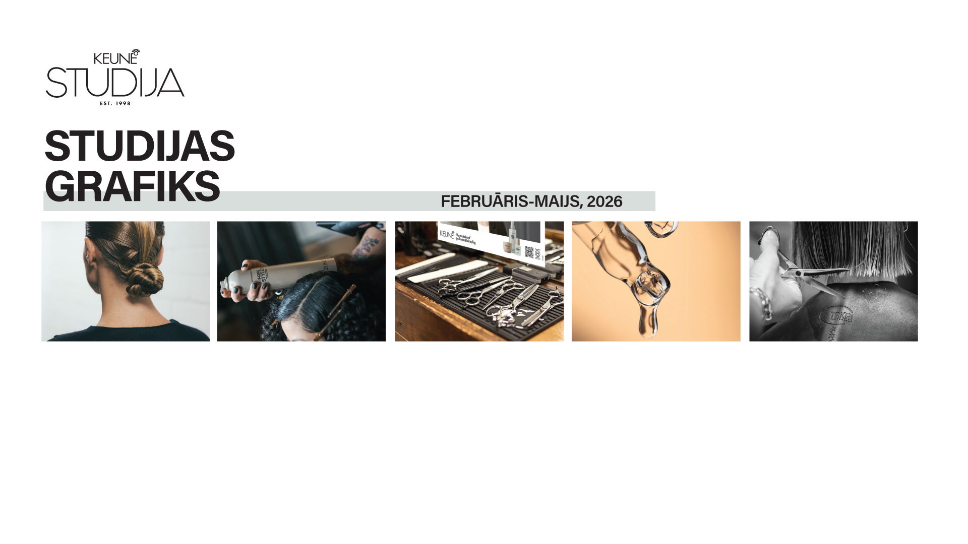 Keune Studija piedāvā frizieru apmācības klātienē, kas sniegs iespēju iegūt papildu zināšanas, atsvaidzinot savu profesionālo ikdienu! Grafiku skatīt zemāk. APMĀCĪBU NORISES VIETA: Keune Studija, Rīga, Ūnijas iela 6 (3. stāvs). PIETEIKŠANĀS: Iluta +371 26199021, Sintija +371 28328168, Ilze +371 28357375, Inese +371 29184858  rakstot keune@keune.lv