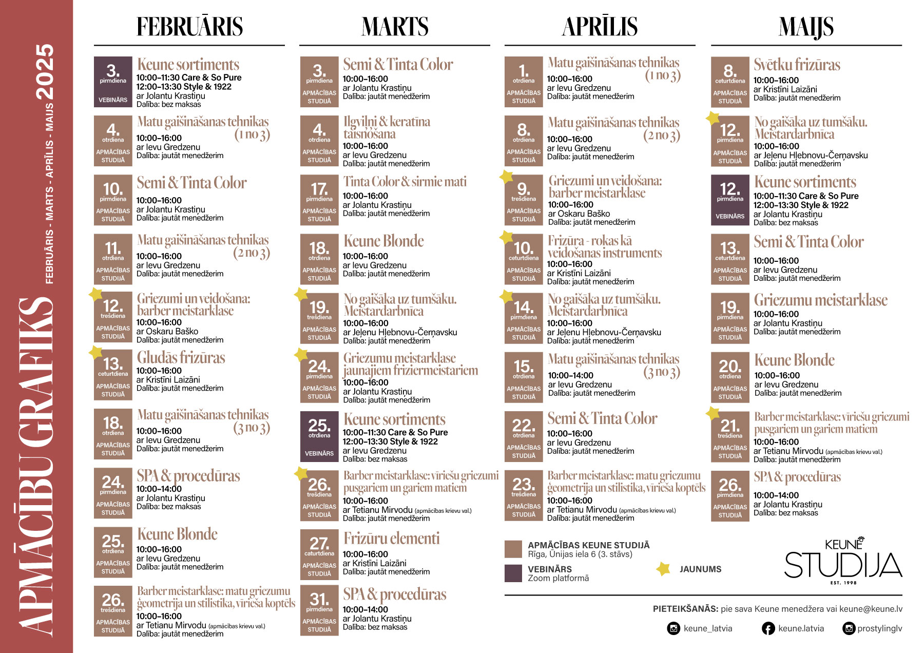 Apmācību norises vieta: KEUNE STUDIJA, Rīga, Ūnijas iela 6, 3.stāvs.
